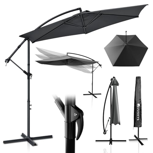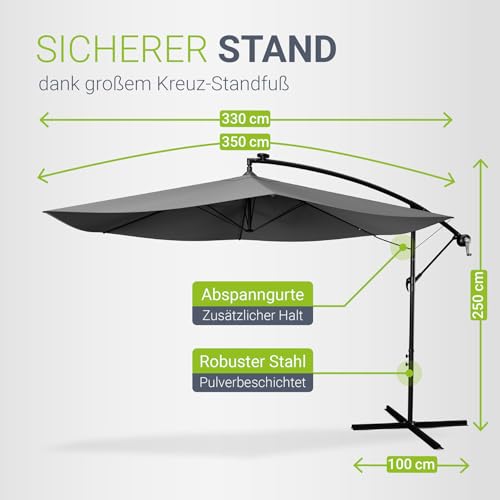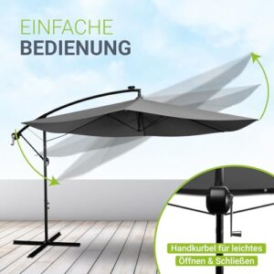 - ✔ Sonnenschutz: Der Ampelschirm (grau) mit Kurbel & Ständer ist mit seinem Durchmesser von 330 cm bei intensiver Sonne der ideale Schattenspender für Garten, Balkon oder Terrasse; mit Abspanngurten