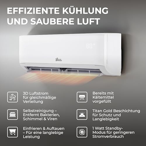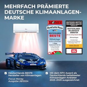 - WIFI-READY: Steuerung der Split Klimaanlage auch per App (iOS & Android), Alexa & Google Assistant möglich. Temperatur, Timer & Modi von überall regeln und Energie sparen. Ideal für Büro & Zuhause.