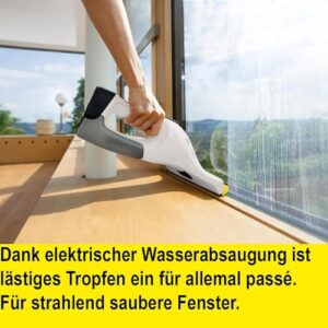 - Mit 100 Minuten Laufzeit überzeugt der Kärcher Fensterreiniger WV 7 bei großen Reinigungsflächen – ideal für Wintergärten, Schaufenster oder mehrere Räume in einem Durchgang.