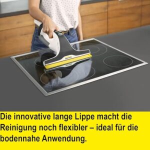 - Ausgestattet mit zwei Absaugdüsen (breit und schmal) passt sich der Kärcher Fensterreiniger flexibel an jede Fenstergröße an – perfekt für rahmenlose Glasflächen oder kleine Scheiben.