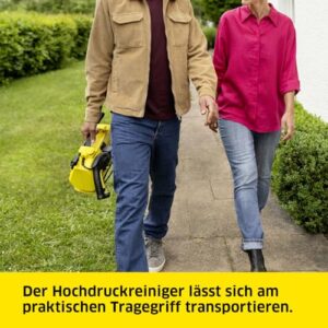 - Besonders kompakt: Der Hochdruckreiniger ist besonders klein und lässt sich einfach verstauen. Mit dem praktischen Tragegriff lässt er sich leicht transportieren