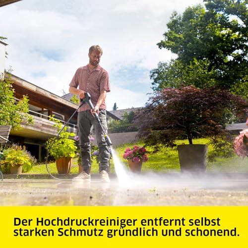- Leistungsstark: Mit bis zu 160 bar Druck werden selbst starke Verschmutzungen rund um Hof und Garten beseitigt, für empfindlichere Gegenstände lässt sich der Hochdruckstrahl regulieren