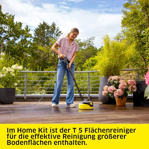 - Home Kit: Mit dem Flächenreiniger T 7 und dem Stein- und Fassadenreiniger 3-in-1 lassen sich große Flächen wie Terrassen, Mauern oder Hofeinfahrten spritzfrei säubern