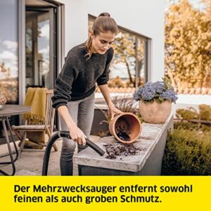 - Lieferumfang: Im Set befinden sich der Kärcher Nass-/Trockensauger WD 3 S V-17/4/20, ein Patronenfilter, ein Vliesfilterbeutel, eine Boden- sowie Fugendüse, der Saugschlauch und 2 Saugrohre
