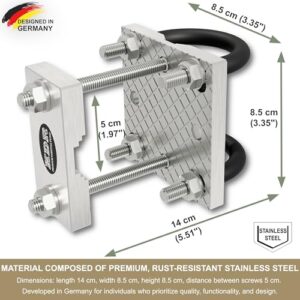 - Rostfreier Edelstahl – stabil & langlebig: Gefertigt aus massivem V2A-Edelstahl für hohe Korrosionsbeständigkeit und sicheren Halt auf verschiedenen Geländertypen.