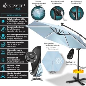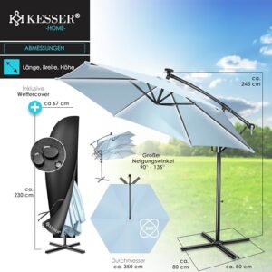 - 𝐑𝐎𝐁𝐔𝐒𝐓 & 𝐒𝐈𝐂𝐇𝐄𝐑: Ein robuster Mast aus leichtem und rostfreiem Aluminium mit 48mm Durchmesser sorgt für stabilen Halt und auch 6 Streben geben nochmal extra Stabilität. Zusätzlich kann der Sonnenschirm am Fußkreuz mit den dazu passenden KESSER Sonnenschirmständer beschwert werden, um Wind und Wetter standzuhalten. Die Schirmbespannung besteht aus 100% Polyester und ist wasserabweisend, so können Sie den Schirm auch bei Regen nutzen. Zusätzlich wird ein Cover kostenlos mitgeschickt.