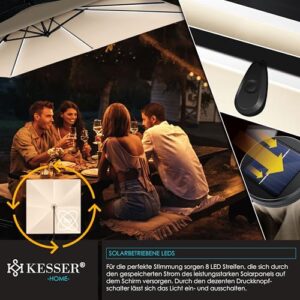 - 𝐒𝐓𝐔𝐅𝐄𝐍𝐋𝐎𝐒𝐄 𝐖𝐈𝐍𝐊𝐄𝐋𝐄𝐈𝐍𝐒𝐓𝐄𝐋𝐋𝐔𝐍𝐆: Stufenlose Winkeleinstellung mit 360° Arretierfunktion und großem Neigungswinkel (90°-135°) ermöglicht es Ihnen, den KESSER Sonnenschirm eckig individuell an die jeweiligen Licht- und Wetterverhältnisse anzupassen. So können Sie sich ganz entspannt unter dem Schirm zurücklehnen und den Tag genießen.