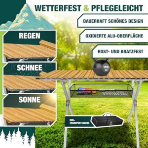 - 𝐏𝐄𝐑𝐅𝐄𝐊𝐓𝐄𝐑 𝐂𝐀𝐌𝐏𝐈𝐍𝐆𝐁𝐄𝐆𝐋𝐄𝐈𝐓𝐄𝐑: Der frühe Morgen hält Sonnenschein für Sie bereit und Sie hören die Vögel zwitschern, wenn Sie nun den Reißverschluss Ihres Zeltes öffnen und die warme Luft am Morgen einatmen riecht es wieder nach Campingzeit. Wer gerne Campen geht, weiß ganz genau, dass man besonders flexibel und auf engstem Raum organisiert sein muss. Neben dem Campingzelt und dem Campinggrill ist unser Campingtisch einfach unerlässlich.