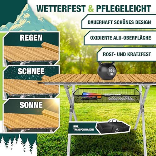 - 𝐇𝐎𝐂𝐇𝐖𝐄𝐑𝐓𝐈𝐆𝐄𝐒 𝐔𝐍𝐃 𝐏𝐅𝐋𝐄𝐆𝐄𝐋𝐄𝐈𝐂𝐇𝐓𝐒 𝐌𝐀𝐓𝐄𝐑𝐈𝐀𝐋: Durch die Verarbeitung von hochwertigem Aluminium ist der Picknicktisch auch vor Regen geschützt, dadurch ist das Rosten des Tisches ausgeschlossen. Auf einem Festival oder beim Campen sind Schmutz und Staub unvermeidbar, deshalb ist es wichtig seine Campingmöbel schnell und unkompliziert reinigen zu können. Einfach mit Wasser abspritzen oder einem feuchten Lappen abwischen.