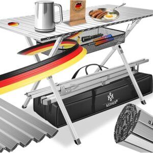 - 𝐖𝐄𝐓𝐓𝐄𝐑𝐅𝐄𝐒𝐓 𝐔𝐍𝐃 𝐋𝐀𝐍𝐆𝐋𝐄𝐁𝐈𝐆: Die hochwertig oxidierte Aluminium-Oberfläche des Tisches ist wetterfest, rostfrei und kratzfest. Egal ob Regen, Schnee oder starke Sonneneinstrahlung – der KESSER Campingtisch bleibt dauerhaft schön und pflegeleicht. Ideal für den Dauereinsatz im Garten, beim Camping oder auf Festivals – ein Outdoor-Tisch, der Sie zuverlässig begleitet.