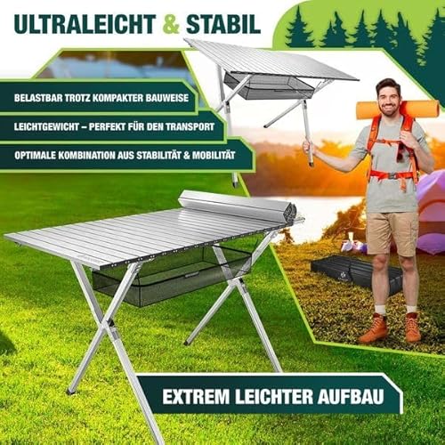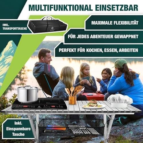 - 𝐌𝐔𝐋𝐓𝐈𝐅𝐔𝐍𝐊𝐓𝐈𝐎𝐍𝐀𝐋 𝐌𝐈𝐓 𝐄𝐗𝐓𝐑𝐀 𝐒𝐓𝐀𝐔𝐑𝐀𝐔𝐌: Der Campingtisch eignet sich perfekt zum Kochen, Essen, Arbeiten oder Spielen im Freien. Das zusätzliche einspannbare Netz unter der Tischplatte bietet praktischen Stauraum für Küchenutensilien, Spiele oder andere Gegenstände. Maximale Flexibilität für jedes Outdoor-Abenteuer – funktional, mobil und zuverlässig!