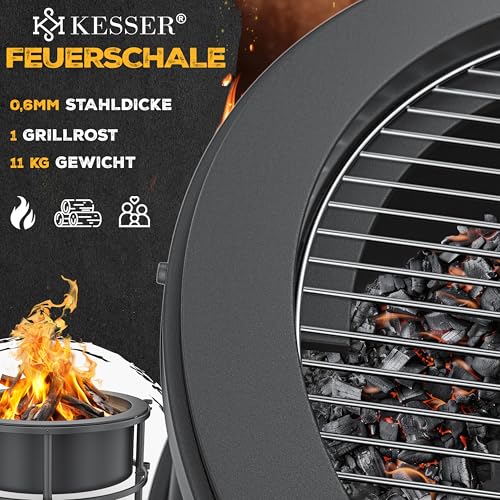 - 𝐌𝐀𝐗𝐈𝐌𝐀𝐋𝐄 𝐒𝐓𝐀𝐁𝐈𝐋𝐈𝐓Ä𝐓 & 𝐒𝐈𝐂𝐇𝐄𝐑𝐇𝐄𝐈𝐓: Die KESSER Feuerschale aus 0,6 mm starkem, kaltveredeltem Stahl bietet mit 11 kg Gewicht und Gusseisen-Feuerhaken höchste Sicherheit & Langlebigkeit – ideal für Garten, Terrasse oder Camping. Die integrierten Rollen mit Feststellbremse garantieren festen Stand und einfachen Standortwechsel – für ein sicheres und flexibles Outdoor-Erlebnis.