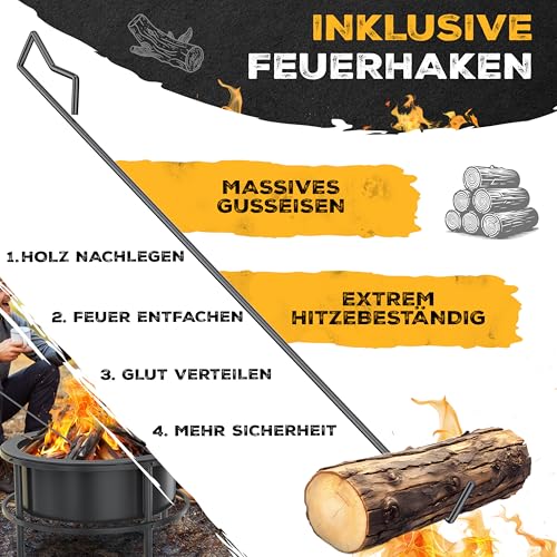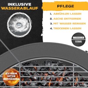 - 𝐏𝐑𝐀𝐊𝐓𝐈𝐒𝐂𝐇𝐄 𝐄𝐗𝐓𝐑𝐀𝐒 𝐅Ü𝐑 𝐏𝐅𝐋𝐄𝐆𝐄 & 𝐊𝐎𝐌𝐅𝐎𝐑𝐓: Inklusive hitzebeständigem Feuerhaken (60 cm) aus massivem Gusseisen zum sicheren Nachlegen von Holz & Glutverteilung, wetterfester Abdeckhaube gegen Regen, robuster Grillbürste zur Reinigung & integriertem Wasserablauf zur einfachen Ascheentfernung – alles durchdacht für maximale Nutzungsfreude!