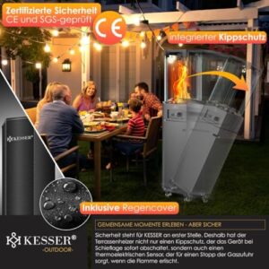 - 🔥 𝐄𝐂𝐇𝐓𝐄𝐒 𝐅𝐋𝐀𝐌𝐌𝐄𝐍𝐒𝐏𝐈𝐄𝐋 & 𝐇𝐎𝐂𝐇𝐖𝐄𝐑𝐓𝐈𝐆𝐄𝐒 𝐃𝐄𝐒𝐈𝐆𝐍: Das beeindruckende 6-Seiten-Feuerglas aus gehärtetem Sicherheitsglas bietet einen rundum freien Blick auf das lebendige Flammenspiel – ein stimmungsvoller Blickfang für jeden Außenbereich. Das Gehäuse aus rostfreiem, pulverbeschichtetem Stahl und der Edelstahl-Brenner garantieren Langlebigkeit, Wetterbeständigkeit und ein elegantes Erscheinungsbild. Mit einem Eigengewicht von ca. 20,5 kg steht der Heizer stabil und sicher.