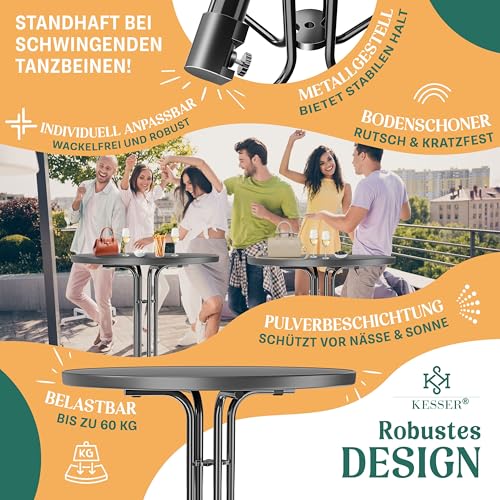 - 𝐁𝐄𝐋𝐀𝐒𝐓𝐁𝐀𝐑, 𝐑𝐎𝐁𝐔𝐒𝐓 𝐔𝐍𝐃 𝐋𝐀𝐍𝐆𝐋𝐄𝐁𝐈𝐆: Profitieren Sie von dem hochwertigen und stabilen Stehtisch aus dem Hause KESSER, dieser ist äußerst robust und hat eine Belastungskapazität von bis zu 60 Kg. Zusätzlich lässt sich der Partytisch auch hervorragend im Freien verwenden, denn er besteht aus UV- und wetterfesten Bestandteilen wie zum Beispiel pulverbeschichtetem Stahl. Dadurch lässt sich der Gartentisch auch kinderleicht und schnell reinigen.