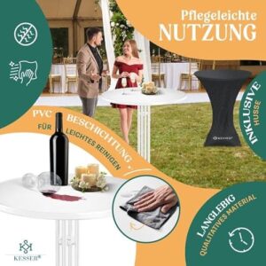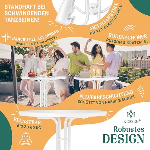 - 𝐁𝐄𝐋𝐀𝐒𝐓𝐁𝐀𝐑, 𝐑𝐎𝐁𝐔𝐒𝐓 𝐔𝐍𝐃 𝐋𝐀𝐍𝐆𝐋𝐄𝐁𝐈𝐆: Profitieren Sie von dem hochwertigen und stabilen Stehtisch aus dem Hause KESSER, dieser ist äußerst robust und hat eine Belastungskapazität von bis zu 60 Kg. Zusätzlich lässt sich der Partytisch auch hervorragend im Freien verwenden, denn er besteht aus UV- und wetterfesten Bestandteilen wie zum Beispiel pulverbeschichtetem Stahl. Dadurch lässt sich der Gartentisch auch kinderleicht und schnell reinigen.