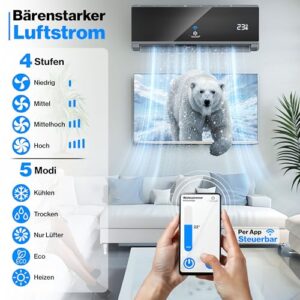- 𝐖𝐈𝐅𝐈-𝐑𝐞𝐚𝐝𝐲: Mit Hilfe des optionalen USB-Moduls kann die Klimaanlage per Smartphone oder Tablet (iOS oder Android) gesteuert werden. Über die App können Sie nicht nur die Temperatureinstellungen vornehmen sondern auch sämtliche anderen Funktionen der Klimaanlage steuern - völlig ortsunabhängig! Die App selbst ist und kostenlos und einfach zu bedienen - erhöhter Komfort und Hilfe, Ihre Energiekosten zu senken. Problemlos von unterwegs zu bedienen.