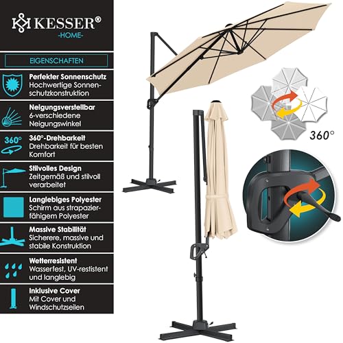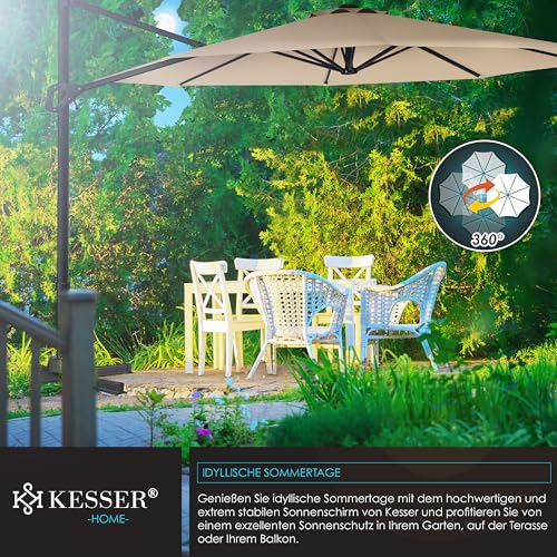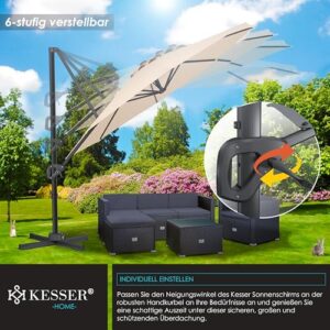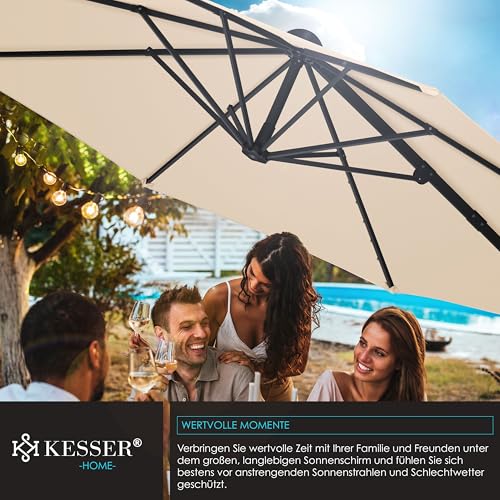 - 𝐒𝐓𝐈𝐋𝐕𝐎𝐋𝐋: Genießen Sie wertvolle Momente mit Ihren Liebsten unter dem stabilen und langlebigen Sonnenschirm von KESSER. Sei es bei einem Grillabend mit Freunden oder beim Frühstück mit der Familie auf der Terrasse, der eingebaute Neigungswinkel bietet Ihnen einen optimalen Schutz gegenüber starker Sonnenbestrahlung oder bei schlechtem Wetter. Auch die stilvolle Optik und die unterschiedlichen Farbvariationen macht Ihren Sonnenschutz zu einem echten Blickfang.