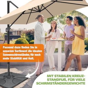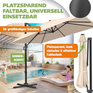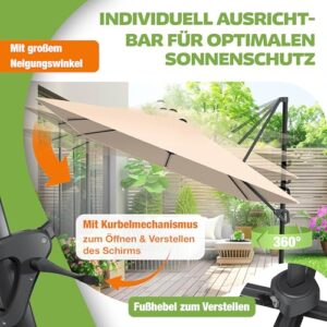 - 𝐅𝐋𝐄𝐗𝐈𝐁𝐄𝐋 𝐔𝐍𝐃 𝐑𝐎𝐁𝐔𝐒𝐓: Im Gegensatz zu herkömmlichen Gartenschirmen ist unser Terrassenschirm mit einer 360Ḟ Verstellbarkeit ausgestattet. Genießen Sie dabei perfekten Schutz ohne dabei den Schirm mühsam jedesmal aufs neue verstellen zu müssen. Über einen integrierten Fußhebel können Sie den Schirm ganz einfach und unkompliziert drehen. Einfach den Hebel betätigen und den Schirm je nach Sonneneinfall ausrichten.