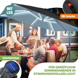 - 𝐏𝐄𝐑𝐅𝐄𝐊𝐓𝐄𝐒 𝐀𝐔𝐒𝐑𝐈𝐂𝐇𝐓𝐄𝐍: Passen Sie den Neigungswinkel des Marktschrimes an der robusten Handkurbel an Ihre Bedürfnisse an und genießen Sie eine schattige Auszeit unter dieser sicheren, großen und schützenden Überdachung. Dank des breiten Schirmes profitieren Sie von einer besonders großen Schattenfläche, dadurch haben Sie und Ihre Liebsten gemeinsam Platz um das Wetter zu genießen. Über die integrierte Kurbel können Sie den Schirm ganz einfach öffnen oder schließen.