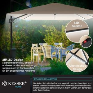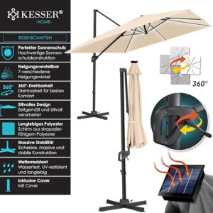 - 𝐈𝐃𝐄𝐀𝐋𝐄𝐑 𝐒𝐎𝐍𝐍𝐄𝐍𝐒𝐂𝐇𝐔𝐓𝐙: Um sich die beste Abhilfe zu schaffen und die Haut vor starker Sonnenstrahlung zu schützen ist der eckige Sonnenschirm der Marke KESSER die ideale Lösung! Dieser spendet Schatten und ermöglicht Ihnen das schöne Wetter trotzdem zu genießen zu können ohne dabei direkt nach drinnen flüchten zu müssen.