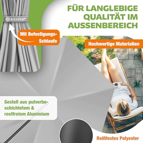 - 𝐎𝐏𝐓𝐈𝐌𝐀𝐋𝐄𝐑 𝐒𝐂𝐇𝐔𝐓𝐙: Der Sommer ist zum Greifen nah, ein wolkenloser Himmel und die Temperaturen schnellen nach oben. Mit dem KESSER Ampelschirm schützen Sie sich und Ihre Gäste vor direkter UV- Strahlung und schaffen gleichzeitig ein schattiges Plätzchen auf Ihrem Balkon, der Terrasse oder im Garten. Schnappen Sie sich ein kühles Getränk, ein gutes Buch und genießen Sie unbeschwert den Tag mit unserem großartigen Schattenspender.