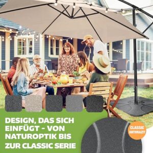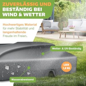 - 𝐌𝐀𝐗𝐈𝐌𝐀𝐋𝐄𝐑 𝐒𝐂𝐇𝐔𝐓𝐙: Unser Sonnenschirm-Ständer bietet in Kombination mit einem Sonnenschirm genügend Schutz vor Sonnenstrahlen im Sommer, aber auch vor Witterungsänderungen wie zum Beispiel leichtem Wind oder Regen. So können Sie ganz in Ruhe in Ihrem Garten oder auf dem Balkon ein Buch lesen oder gemütlich mit Freunden einen Kaffee trinken. Um das maximale Potenzial auszuschöpfen empfehlen wir Ihnen zusätzlich zu dem Sockel unseren Sonnenschirm der Marke KESSER.