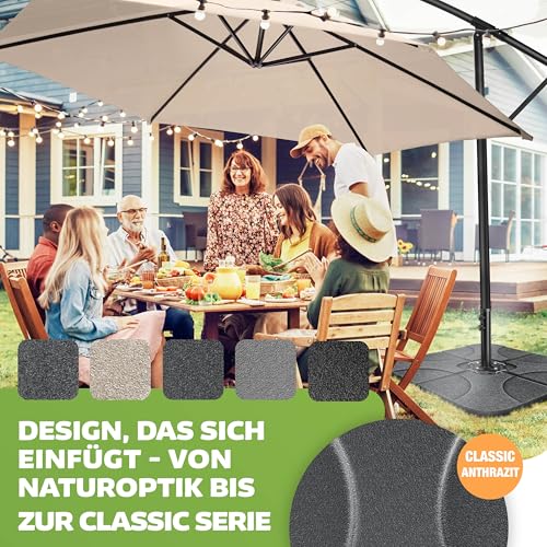 - 𝐎𝐏𝐓𝐈𝐒𝐂𝐇𝐄𝐒 𝐇𝐈𝐆𝐇𝐋𝐈𝐆𝐇𝐓: Nach der Entleerung lassen sich die Bodenplatten leicht transportieren und aufgrund der geringen Größe gut lagern. Dank unserer zwei unterschiedlichen Farbausführungen finden Sie den garantiert passenden Ampelschirmständer für Ihren Garten. Dieser passt sich hervorragend Ihrem Garten an und ist dadurch ein optisches Highlight bei Ihrer nächsten Gartenparty mit Freunden oder der Familie.