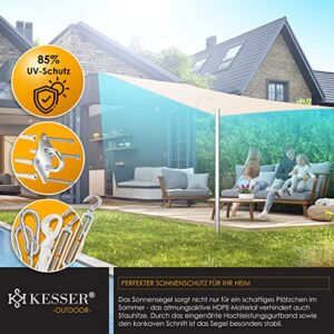- 𝐕𝐈𝐄𝐋𝐒𝐄𝐈𝐓𝐈𝐆 𝐕𝐄𝐑𝐖𝐄𝐍𝐃𝐁𝐀𝐑: Das hochwertige Sonnensegel der Marke KESSER besteht ähnliche wie Markisen oder Sonnenschirme aus einem robusten Textilstoff, jedoch sind Sie in der Anwendung deutlich flexibler und effektiver. Der zuverlässige Schattenspender ist wasserabweisend und kann problemlos an Terrassen, Gebäuden oder im Garten montiert werden. Zudem ist unser Sonnensegel optimal für Terrasse, Balkon, Garten-Pool, Spielplätze oder beim Camping im Urlaub geeignet.