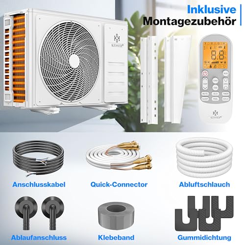 - 𝐄𝐈𝐍𝐅𝐀𝐂𝐇𝐄 𝐈𝐍𝐒𝐓𝐀𝐋𝐋𝐀𝐓𝐈𝐎𝐍: Dank der praktischen Quick-Connect-Technologie lässt sich die KESSER Klimaanlage schnell und problemlos installieren. Kein Entlüften oder Vakuumpumpe notwendig. Mit dem mitgelieferten Montagezubehör können Sie das Gerät sofort in Betrieb nehmen, ohne aufwendige Vorbereitungen.