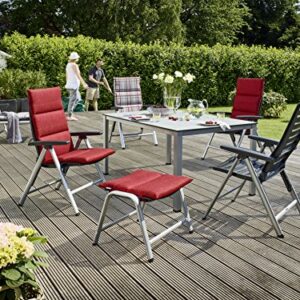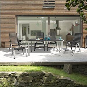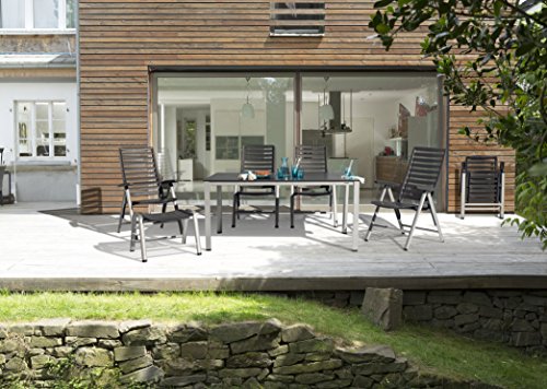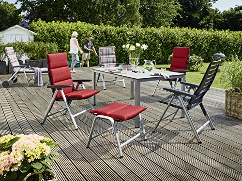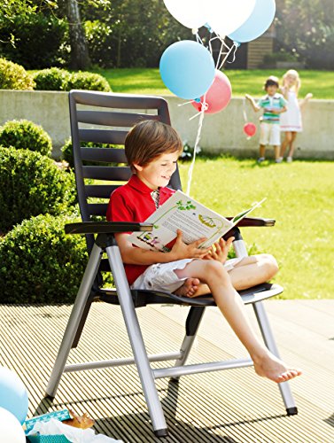 - BEQUEM & STABIL: Die ergonomische Form der vierstufig verstellbaren Rückenlehne sorgt für ein tadelloses Sitzgefühl. Dank des hochwertigen Alu-Gestells steht der Gartensessel auch bei zurückgestellter Lehne stabil.