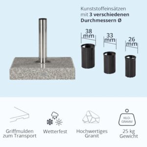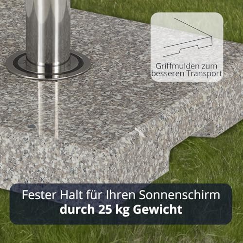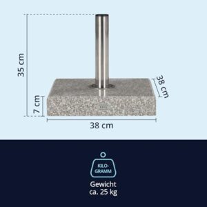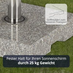 - Top-Material | Der Schirmständer ist aus einem Block aus hochwertigem Granit gefertigt und wiegt insgesamt 25 kg. Das Rohr ist aus rostfreiem Edelstahl gefertigt.