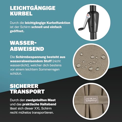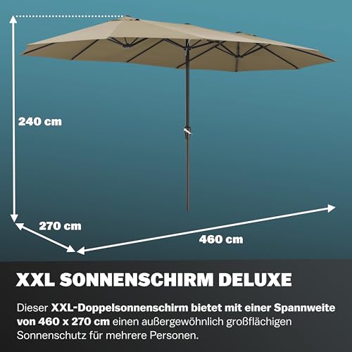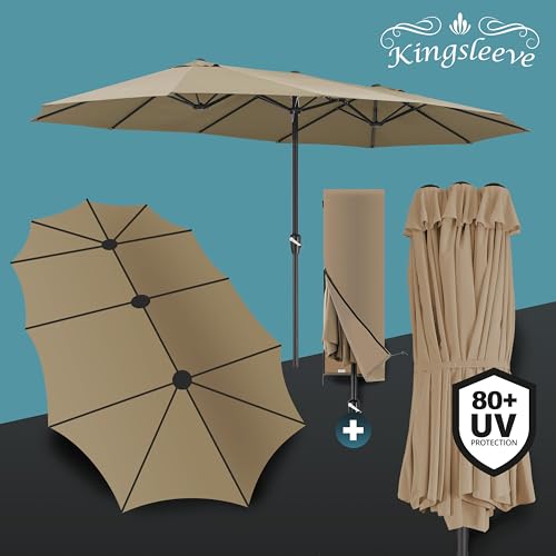 - XXL SONNENSCHUTZ - Mit dem extra großen Sonnenschirm von KINGSLEEVE kannst du dank der riesigen Beschattung von 460 x 270 x 240 cm den Sommer und die Sonne in vollen Zügen genießen. Der Schirm eignet sich daher optimal für große Sitzgarnituren oder mehrere Liegen und bietet großflächig Schatten.