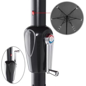 - LEICHTGÄNGIGES KURBELSYSTEM - Der Marktschirm lässt sich mühelos mit der verbauten Kurbel Öffnen und Schließen. Dank dieser benutzerfreundlichen Mechanik entfällt das umständliche und zeitraubende Hantieren mit herkömmlichen Schirmen.