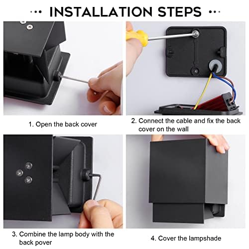 - Lieferumfang: Die Verpackung enthält detaillierte Installationsanleitungen für die einfache Installation einer schwarzen Außenwandleuchte ohne komplexe Werkzeuge. Die Verpackung enthält: 4 x Wandleuchte 12w; 4 x Installationszubehör; 1 x Benutzerhandbuch.