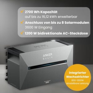 - 🔋 ALL-IN-ONE SOLARSPEICHER FÜR BALKONKRAFTWERKE: Die Anker Solarbank 3 Pro vereint Solarspeicher, Mikrowechselrichter und Energiemanagement in einem Gerät für effiziente Stromerzeugung und Nutzung im Haushalt.