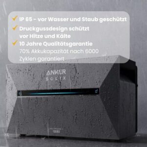 - 📱 SMARTE APP-STEUERUNG: Über die Anker App lassen sich Stromproduktion, Verbrauch, Einspeisung und Speicherstatus in Echtzeit überwachen und gezielt optimieren.