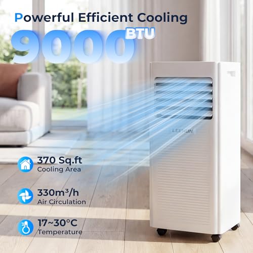 - 9000 BTU Starke Kühlleistung: Die LEENON Klimaanlage mobil bietet dank fortschrittlicher kompressortechnologie 9000 BTU (2,6 kW) Kühlpower. Sie kühlt mittelgroße räume bis 35 m² schnell ab – perfekt für küche, wohnzimmer, büro oder temporäre bereiche. Besiegen sie die hitze mit dieser leistungsstarken klimaanlage, die die temperatur selbst an extrem heißen tagen auf bis zu 17 °C senkt.