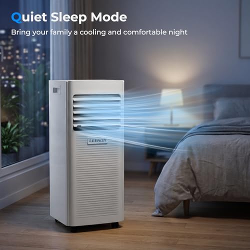 - 4-in-1 Multifunktion: Das LEENON mobile klimagerät vereint kühlen, entfeuchten und lüftermodus und schlafmodus in einem kompakten Gerät. Der kühlmodus sorgt für eine schnelle temperatursenkung, um ihren raum sofort abzukühlen. Der kontinuierliche entfeuchtermodus entfernt überschüssige feuchtigkeit für ein trockenes raumklima, während der 2-stufen-lüftermodus die luftzirkulation fördert. Dieses klimagerät bietet zudem einen leisen schlafmodus für eine ruhige nachtruhe.