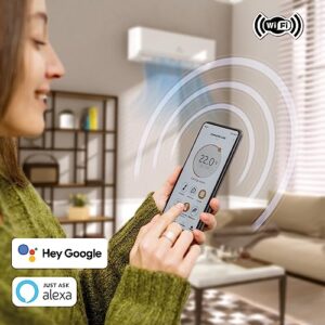 - ✔ 𝐖𝐈𝐅𝐈-𝐔𝐍𝐃 𝐀𝐏𝐏-𝐅𝐔𝐍𝐊𝐓𝐈𝐎𝐍: Koppeln Sie die Klimaanlage mit Ihrem Smartphone oder Tablet und nutzen Sie die benutzerfreundliche App, um das Gerät von überall aus zu steuern. Ob Sie nun die Temperatur anpassen, den Timer einstellen oder die Betriebsart ändern möchten – mit der App haben Sie volle Kontrolle, selbst wenn Sie nicht zu Hause sind.