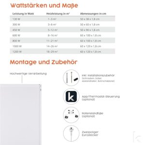 - ✔️ UNSER LEISTUNGSKRACHER - Dank unserer langjährigen Erfahrung im Bereich Infrarot können wir hohe Heizwerte garantieren. Watt | Heizfläche: 130 W | 1-3 m²; 300 W | 3-8 m²; 450W | 5-12 m²; 600 W | 8-16 m²; 800 W | 11-21 m²; 1000 W | 14-26 m²; 1200 W | 18-29 m²