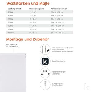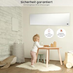 Könighaus Infrarotheizung 120×30 cm – 450 Watt ✓ 5 Jahre Garantie ✓ Doppelter Überhitzungsschutz ✓ Ultraflacher Heizkörper für 6-12 m² ✓ Die platzsparende, CO2-freie Elektroheizung ✓ inkl. Thermostat