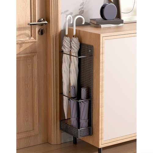 - 【Flexible Installation】 Der Schirmständer bietet vielseitige Montagemöglichkeiten, sodass Sie ihn an Innenwänden, Schrankseiten oder hinter Türen befestigen können, um sich mühelos an Ihren Raum und Ihre Bedürfnisse anzupassen. Ideal für zu Hause. Dieses Produkt verschönert Ihren Wohnraum, indem Regenschirme ordentlich verstaut und leicht zugänglich aufbewahrt werden. Perfekt, um das Speicherpotenzial zu maximieren, ohne Kompromisse beim Stil zu