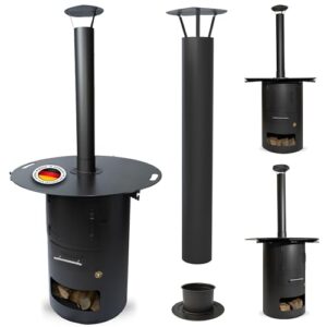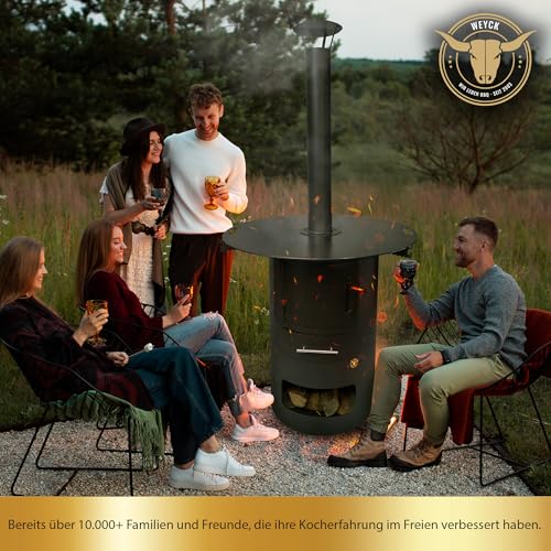 - Rauchfreie Nutzung dank Schornstein – Der Schornstein (1m Rohrlänge) leitet den Rauch über Ihren Köpfen ab. Perfekt für windige Tage und ein angenehmes Kocherlebnis.