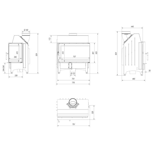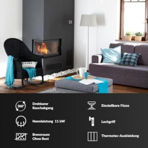KRATKI Kamineinsatz ZIBI Deco Rechts 11kW – Kaminkassette – Holzkamin – 2.BImSchV 15a B-Vg – Lufteinlass 125mm – Schwarzfarbe Kaminverkleidung – modern Deco-Verglasung – Hersteller KRATKI