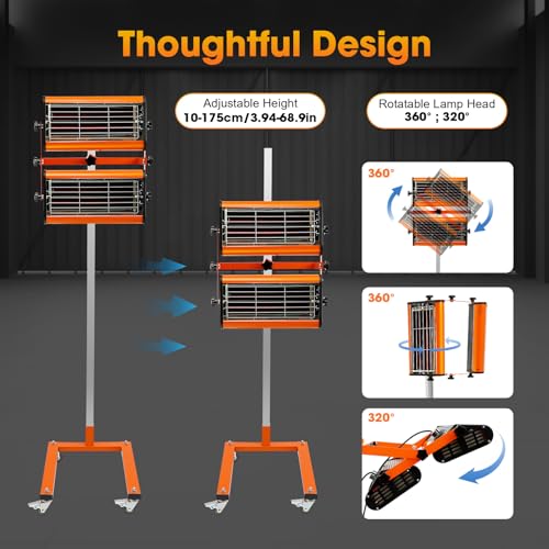 - Leistungsstarke Funktion: Jede Farblampe hat eine Leistung von 1000W (2000W insgesamt), zusammen mit einer Gesamtbackfläche von 2.62*1.97ft, was eine schnelle Trocknung von großen Farbflächen gewährleistet.