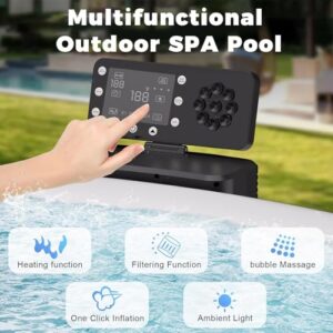 - 【Intelligente Heizung, mühelose Bedienung】 Schluss mit kompliziertem Aufbau! Dank des leistungsstarken, integrierten Heizsystems erwärmt sich das Wasser per Knopfdruck auf angenehme 40 °C. Über das benutzerfreundliche digitale Bedienfeld können Sie den Spa aufblasen, die Temperatur einstellen, die Sprudelintensität regulieren und sogar zwischen 6 verschiedenen LED-Stimmungslichtern wechseln. Das Filtersystem und die automatische Abschaltung nach 72 Stunden sorgen für sauberes Wasser und garantieren Ihnen absolute Sicherheit.