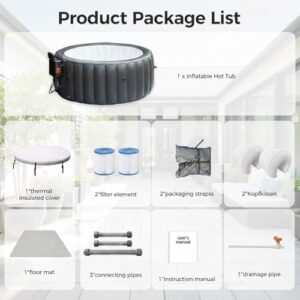 - 【Robuste, energiesparende Konstruktion】 Dieser Spa ist auf Langlebigkeit ausgelegt und besteht aus einem strapazierfähigen, reißfesten Material, das sich weich anfühlt und gleichzeitig den Witterungseinflüssen standhält. Er ist so konzipiert, dass er die Wärme effizient speichert, sodass das Wasser, sobald es warm ist, auch lange warm bleibt. Und mit der mitgelieferten Isolierhülle können Sie bis zu 50 % der Energiekosten sparen – so können Sie sich mehr entspannen und sich weniger Sorgen machen.
