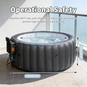 - 【Geräumig & Komfortabel für 3-4 Personen】 Dieser aufblasbare Spa ist ideal für kleine Gruppen. Aufgeblasen misst er ca. 180 cm x 70 cm und fasst bis zu 1425 Liter Wasser. Ob Familienausflug oder entspannter Abend mit Freunden – hier findet jeder genügend Platz, um sich zurückzulehnen und ein Wellness-Erlebnis wie im Spa zu genießen.