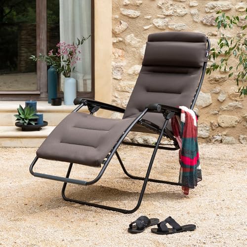 Lafuma MOBILIER – Gepolsterte Zero-Gravity-Relaxliege-Garten – Rsx Clip – AirComfort® – Braun Taupe LFM2058_7057-5 Jahre Garantie